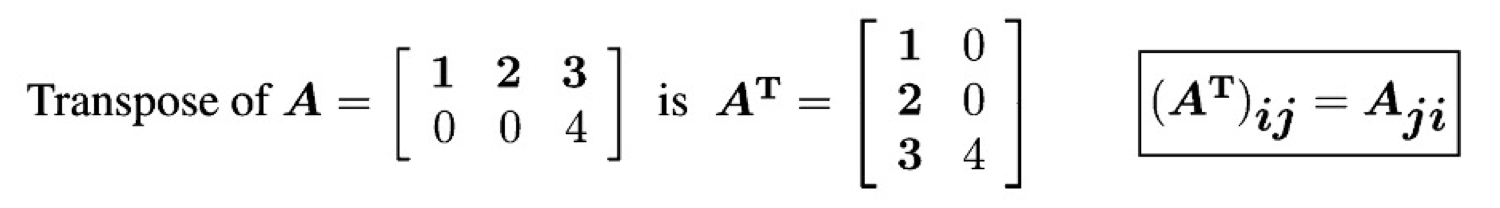 이렇게 인덱스를 ((ij))에서 ((ji))로 바꿔주면 ((A)) transpose를 구할 수 있습니다.