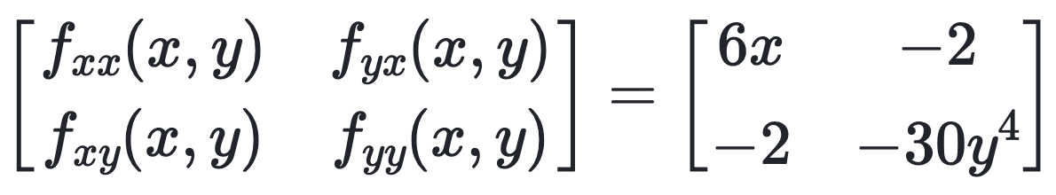 이 함수의 Hessian을 구해보도록 하겠습니다. 이 함수는 다변수함수(multivariate function)입니다. 지금 함수에 ((x)) 와 ((y)) 이렇게 변수가 1개 이상 존재하고 있습니다. 이런 함수를 미분할 때 쓰이는 방법이 편미분입니다.