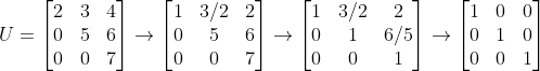 하지만 이 경우도 ((b))가 ((A))의 column space 내에 위치한 경우였고, 우리가 구했던 row echelon form을 rref로 바꾸어보면 identity matrix가 나오면서 dependent column이 없는 것을 알 수가 있습니다.