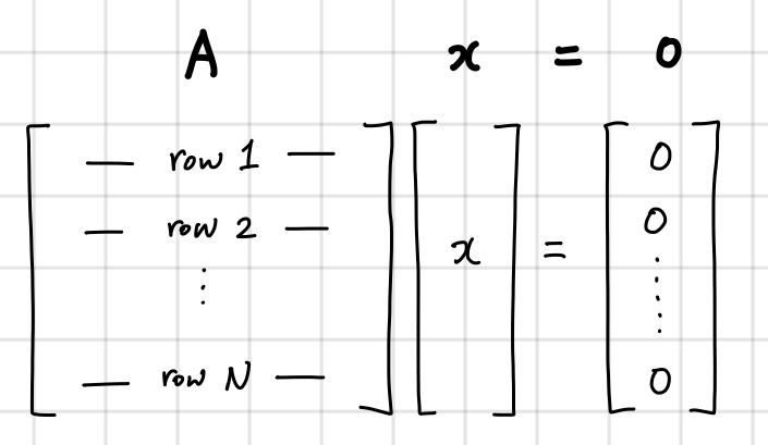Nullspace를 나타내는 법은 위 그림에서도 볼 수 있듯이, ((A))((x)) ((=)) ((0))입니다.