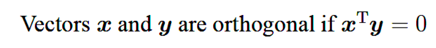 벡터가 직교한다는 것은 다음과 같은 성질을 만족할 때 직교한다는 것입니다. 참고로 직교는 직각이라는 뜻입니다.