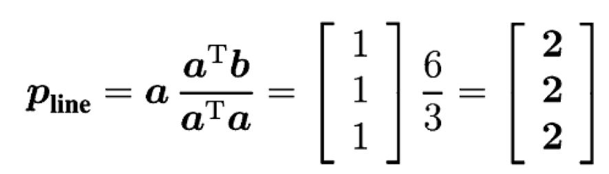 ((b)) 벡터를 각각 line인 ((a))와 plane인 ((A))로 투영시켜볼까요?