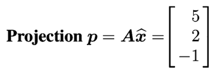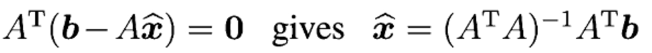그래서 ((b))와 가장 가까운, ((b))를 Column Space에 투영시켜서 그나마 가장 나은 해인 ((\hat{x}))라도 구해보자는 것입니다.