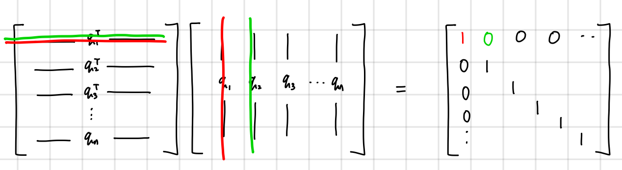 왜 이렇게 되는지 그림으로 보자면, ((Q^{T}))((Q))를 표현해보면 다음과 같습니다.