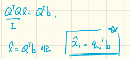 우리의 근사해인 ((\hat{x}))를 구하기 위한 Normal Equation으로 돌아가서, ((A))가 ((Q))라고 생각해봅시다.