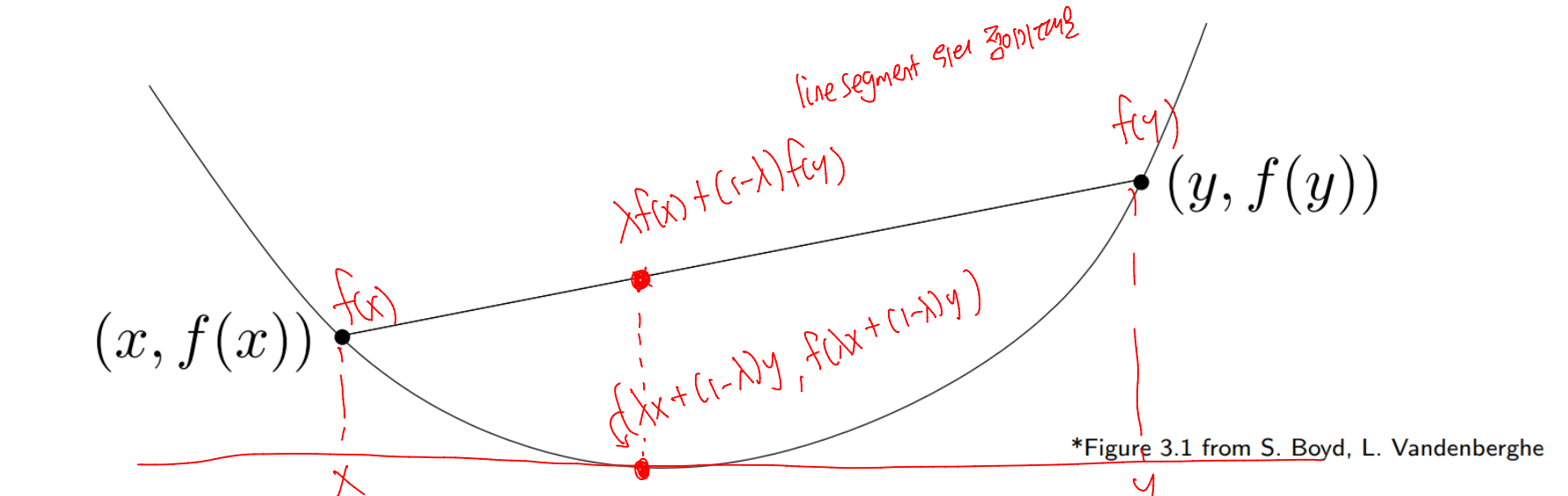 Line segment의 함숫값이 각각 점들의 함숫값으로 line segment를 만든 것 보다 항상 작아야합니다.