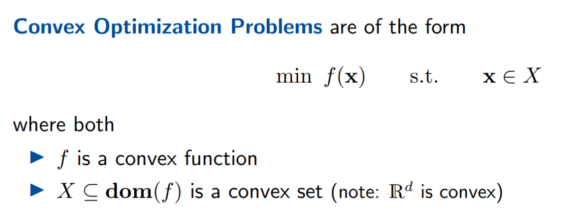내가 최소화시키고 싶은 함수가 convex function이고, 함수의 정의역이 convex set일 때를 convex optimization problem이라고 합니다.