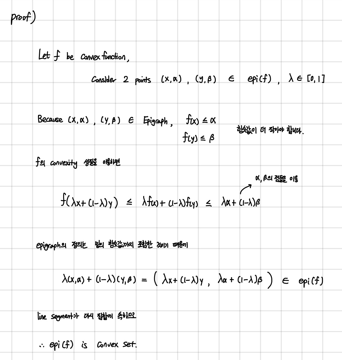 Epigraph가 convex set일 경우 함수도 convex function이다.