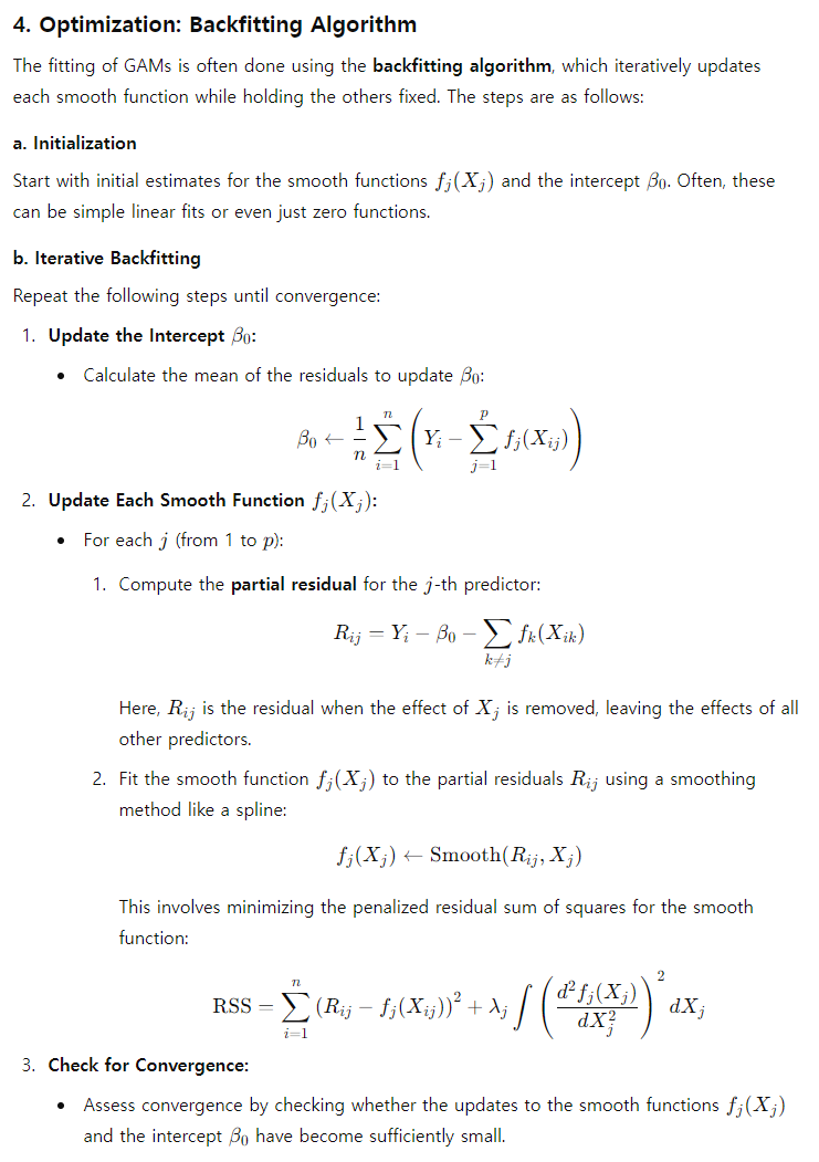 다음은 GAM이 smooth function들을 어떻게 데이터에 맞게 optimize하는지에 대한 과정이다.