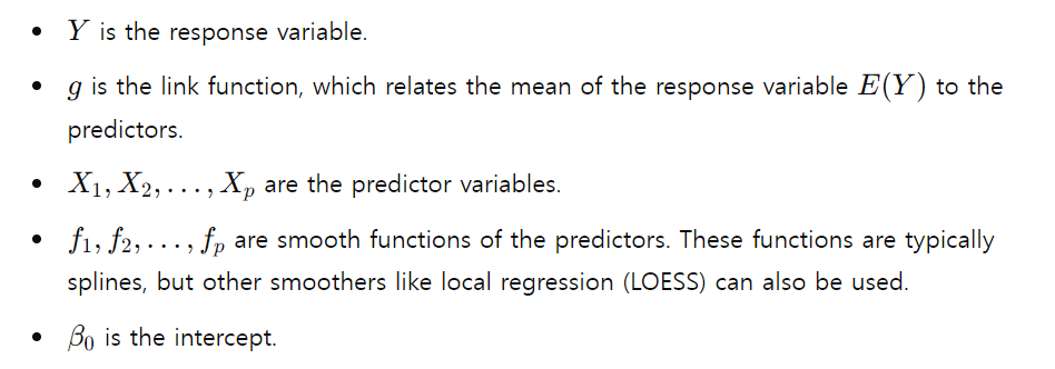 GAM에서는 각 predictor variable들이 영향을 미치는 정도를 함수로 나타낸다.