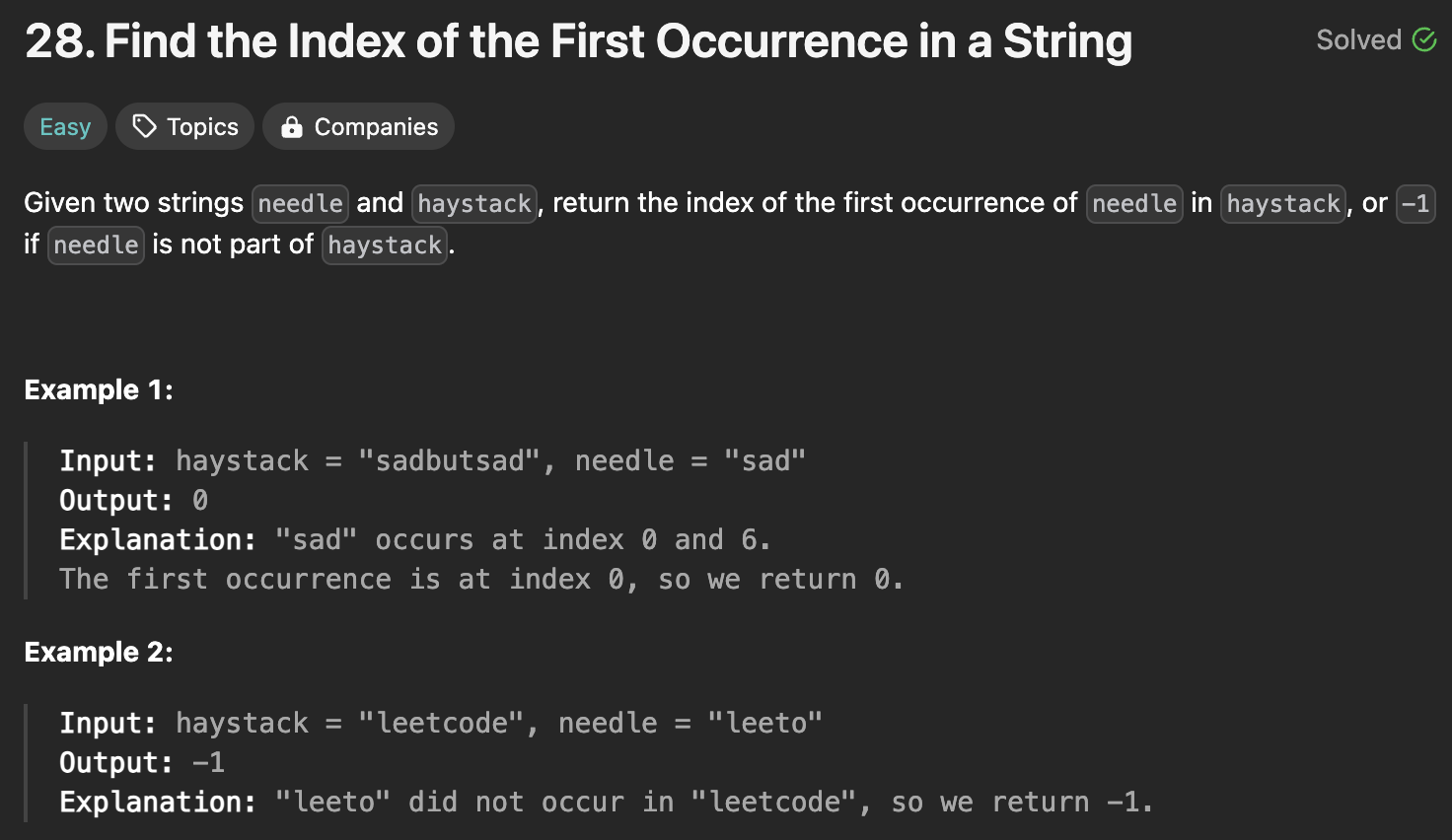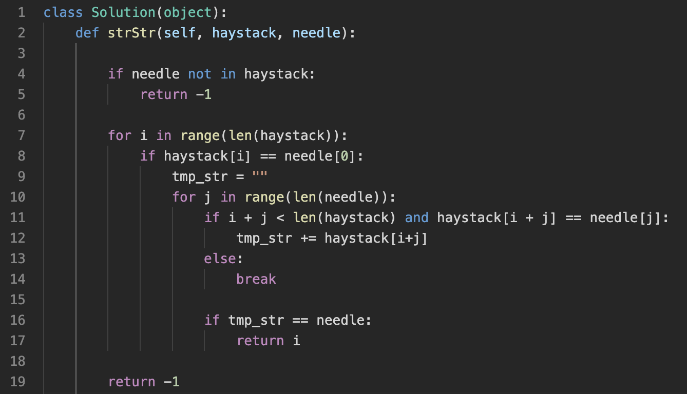 간단히 말해서 어떤 단어가 처음으로 나타나는 index를 리턴하면 되는 문제이다. 내 처음 코드는 다음과 같았으나...