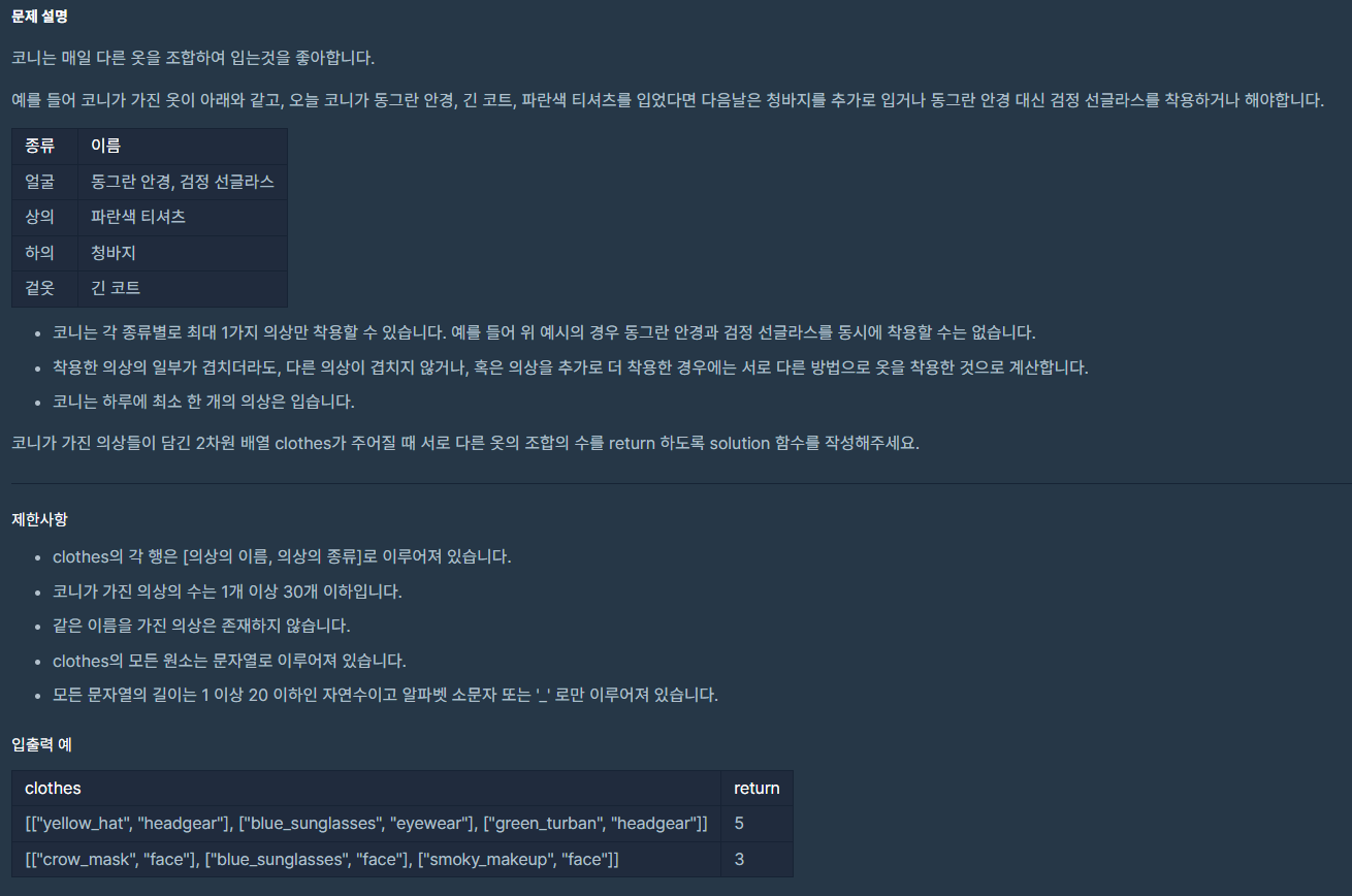 문제 설명 부분의 표처럼 해시맵으로 정리하고자 했다.