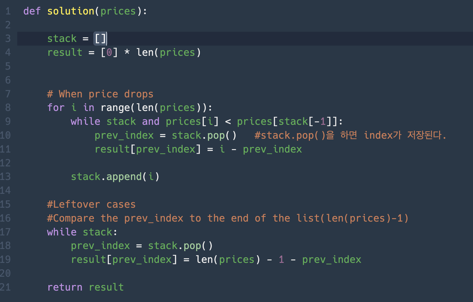 result = [0] * len(prices)로,