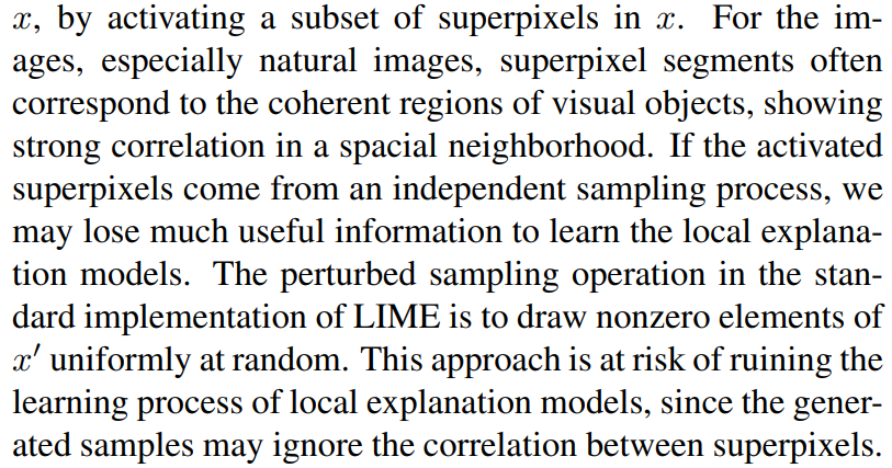 기존 LIME의 문제점들 중 하나는, superpixel을 통한 perturbed image의 형성 방식이다.