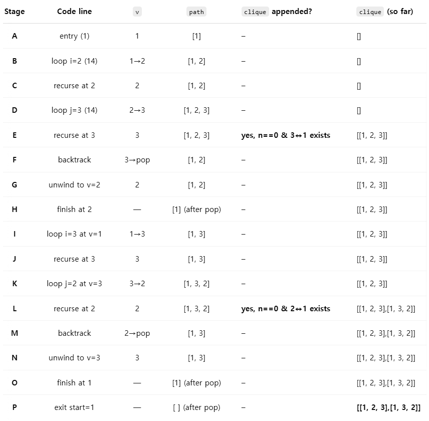 그리고 clique 사이즈 1, 2인 상태에 대해서도 다 수행해준다.