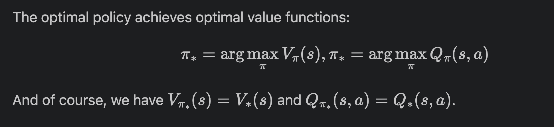강화학습은 결국 optimal한 걸 원하기 때문에, 대체 뭐가 optimal한 거냐? 에 대한 기준을 세워야 한다. 이걸 만족하면 그게 최적의 value이고 최적의 모델 행동양식이기 때문이다.
