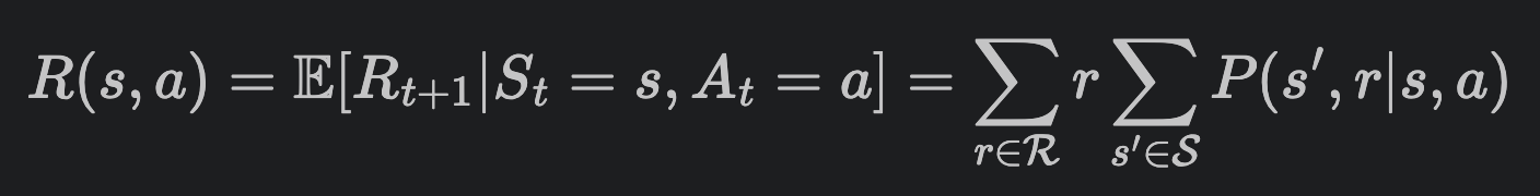 우리의 reward는, 어떤 state s에서 action a를 했을 때, 나올 수 있는 총 보상이다.