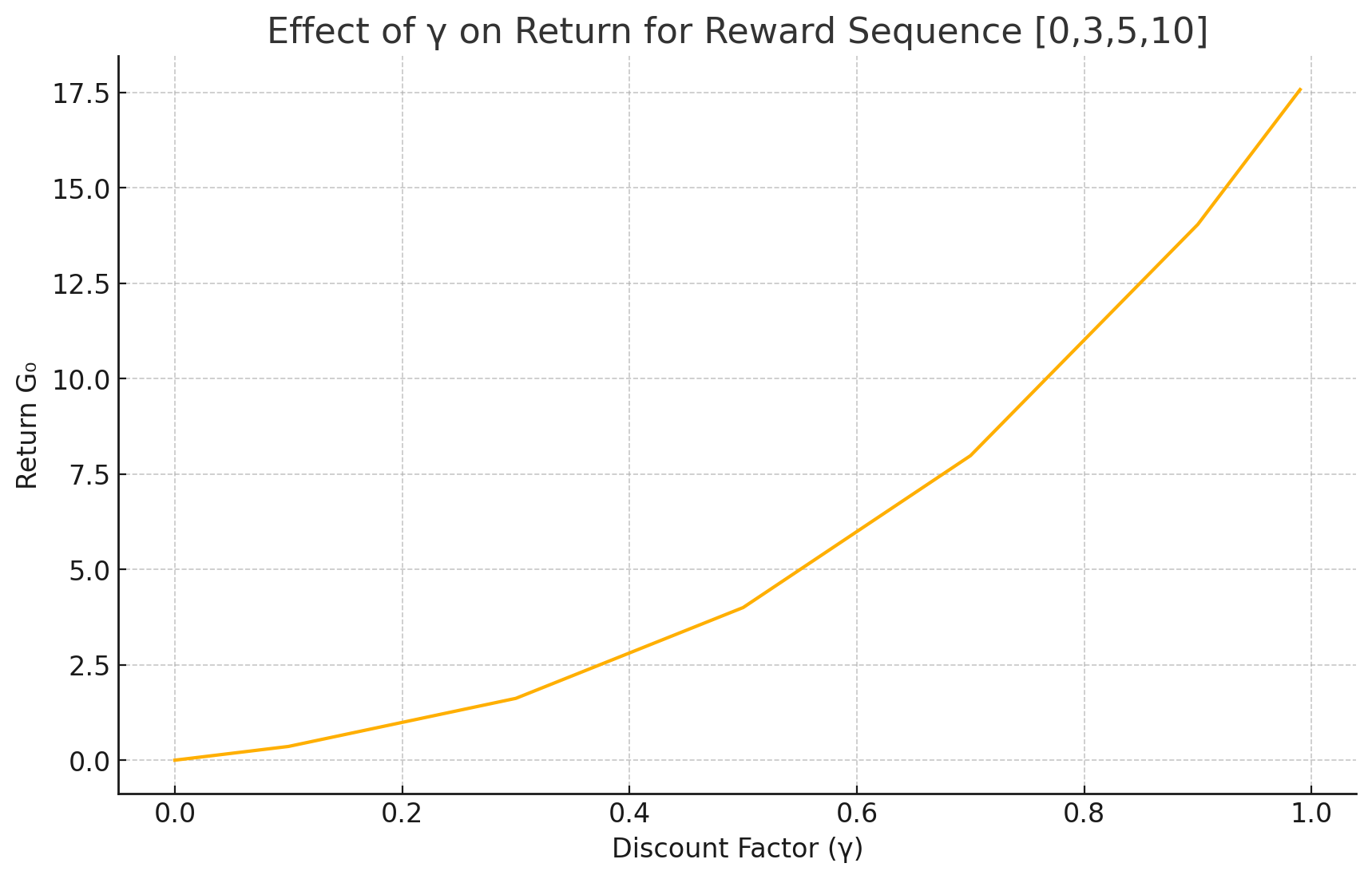 감마의 변화에 따라 최종 보상 값이 어떻게 바뀌는지에 대한 직관을 위해, 아래와 같은 예시를 보면 된다.
