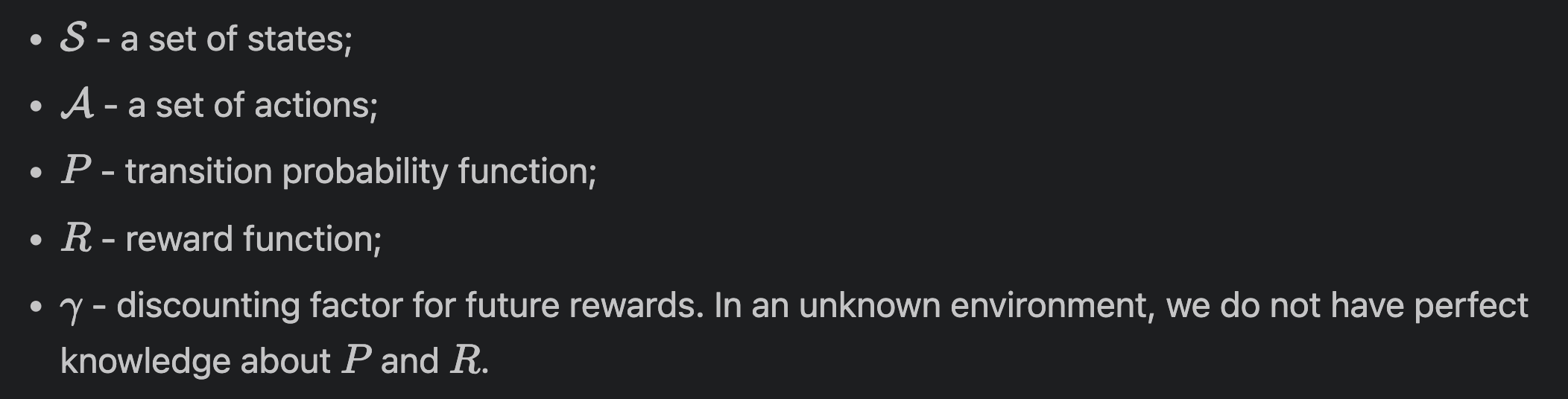 MDP의 모든 state는 markov 성질을 만족한다. 약간 MDP가 가지고 있는 inductive bias 같은 거다.