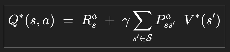 그리고 최고의 action-value는, 그 action을 취한 보상을 받고, 그 뒤의 reward들이 모두 최고의 value가 나오면 그게 그 action을 취했을 때 나올 수 있는 최고의 action-value라는 생각을 할 수도 있다.