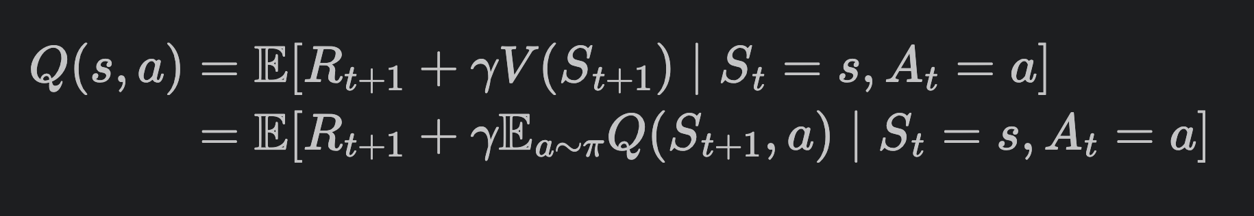 Q-value도 마찬가지이다. 전부 보면 지금 당장의 한 스텝 보상 + 감마가 적용된 미래의 보상으로 분해되어있다.