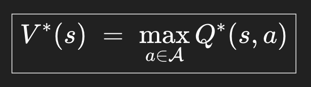 어떻게 시작할거냐면, 최고의 state-value는, 그 state에서 최고의 action을 취했을 때 나온다는 생각에서 시작할거다. 가장 행동을 잘 하면 그 상태에서 가장 최고값을 끌어낼 수 있으니까.