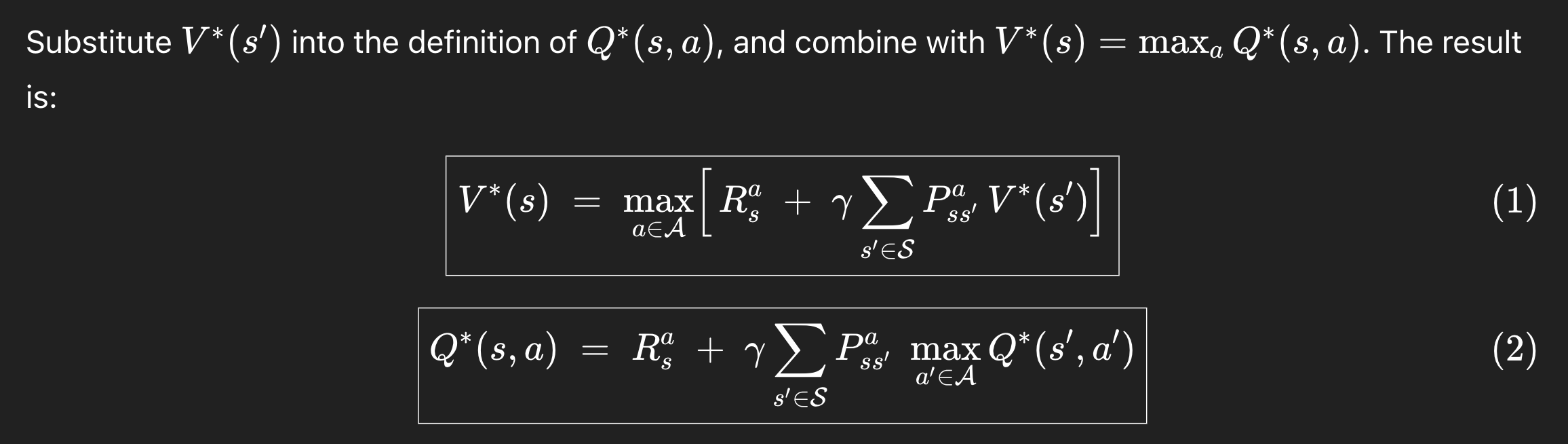 Bellman Optimality Equations