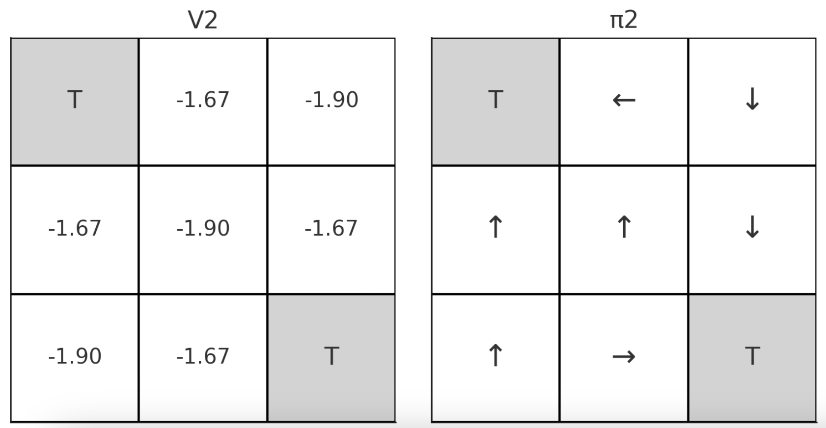 (0,0), (2,2) 지점에 terminal state가 있다.