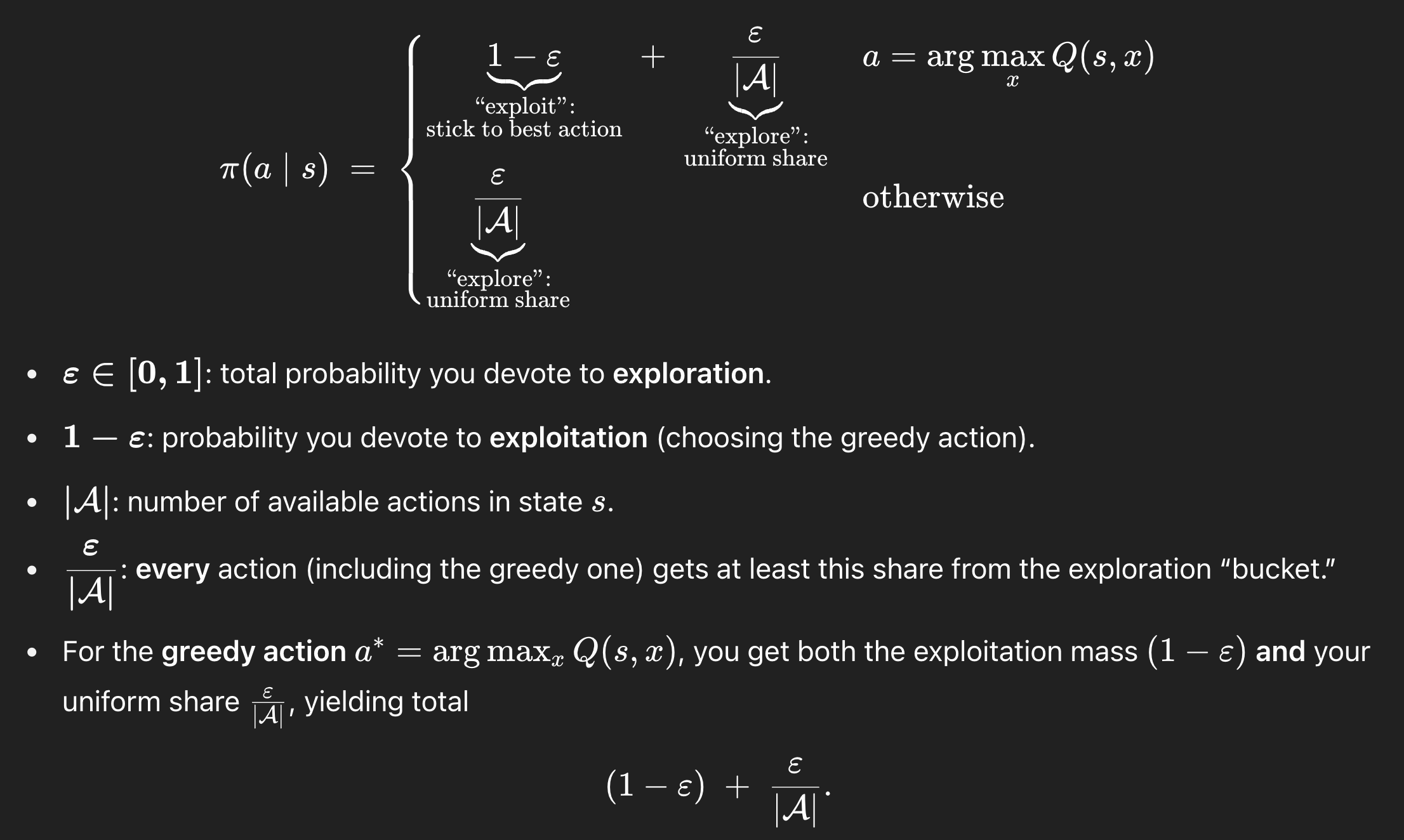 epsilon-greedy는 쉽게 말해서 1−ε의 확률로 best-known action을 하고(exploitation), ε의 확률로 uniform하게 random으로 action을 해주는 것이다(exploration).