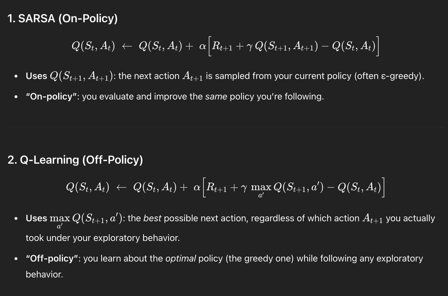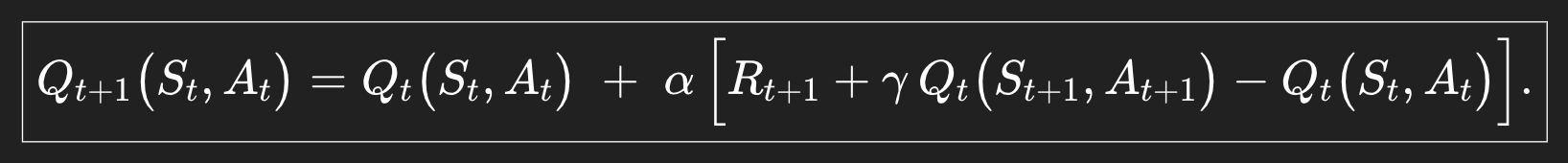 Greedy하게, current policy에 얽매이지 않고 업데이트 해준다는 점에서 차이가 있는 걸 볼 수 있다.