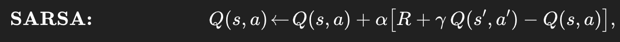 잠깐 SARSA랑 비교를 해보면,