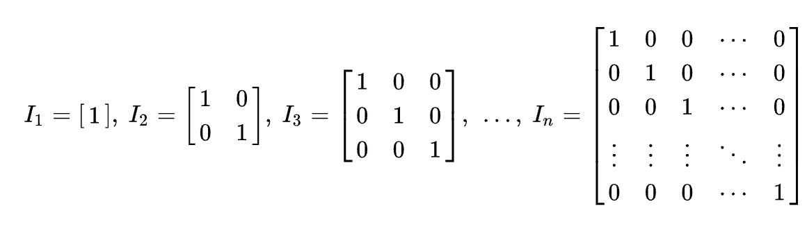 만약 행렬 A와 곱해진다면 행렬 A가 그대로 나오는, 숫자 1을 곱하는 것과 같은 느낌입니다.