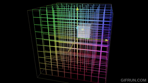 2차원 그리드에서는 단위면적으로 1x1 정사각형을 보셨으니, 이번에는 3차원 공간에서 단위부피로 1x1x1 정육면체를 보겠습니다. 아래는 determinant가 0일 때 일어나는 상황입니다.