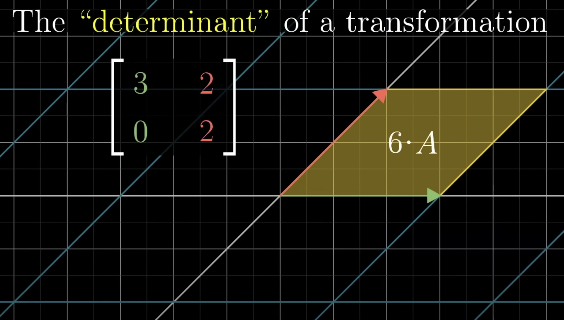 이 matrix의 determinant 값은 ((3))x((2)) + ((2))x((0))으로, 6입니다.