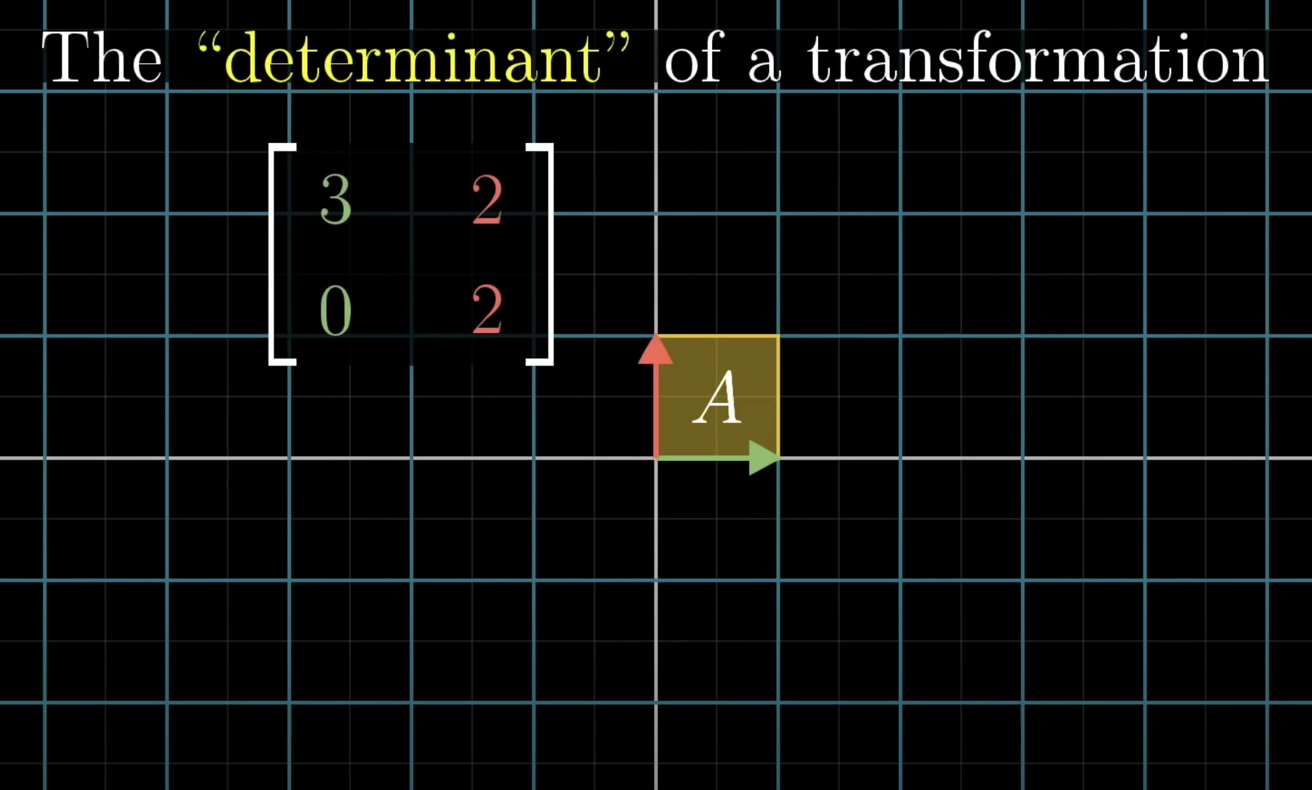 행렬은 기저벡터에 변화를 가한다고 생각할 수 있습니다. 그렇다면 지금 우리의 기저벡터를 행렬의 좌표대로 움직였을 때 A의 넓이가 어떻게 달라지는지 보겠습니다.